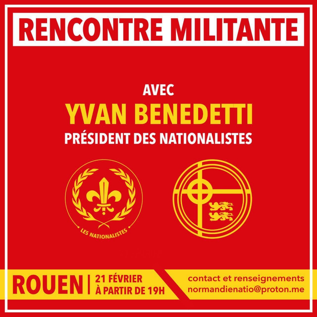 Samedi 21 février, en Normandie : réunion nationaliste avec Yvan Benedetti